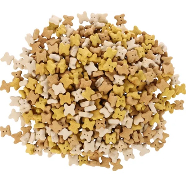 De Flamingo Puppy Bones 1,5 kg van Flamingo zijn krokante, gebakken koekjes in botvorm, speciaal ontwikkeld voor puppy’s. Dankzij het lage vetgehalte zijn ze uitermate geschikt voor jonge honden die in volle groei zijn, zonder hun gewicht onnodig te belasten. Het knapperige recept helpt ook bij de tandhygiëne door het kauwen, wat de vorming van tandplak kan tegengaan. De royale zak van 1,5 kg biedt een voordelige voorraad voor training, snackmomenten of belonen vanaf jonge leeftijd.