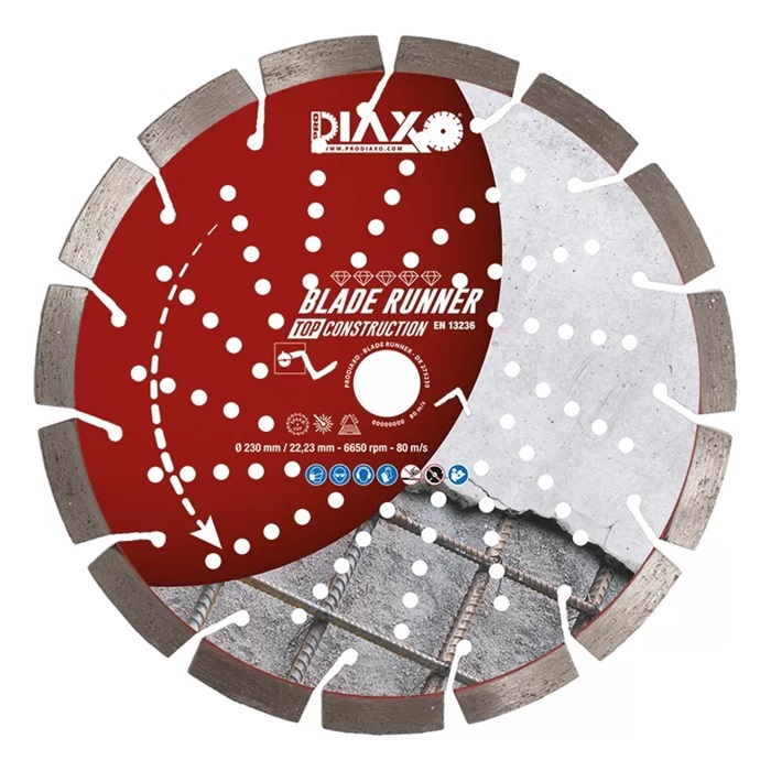 - Geschikt voor: Gewassen grindtegels, gewapend beton, betonblokken, betonklinkers, baksteen hard, baksteen middelhard, poroton, kwartsiet, basalt, porfier, keramische pannen, betonpannen, argex, bouwstaal, graniet, arduin, kleipannen zacht, cementvezelplaten, gasbeton, Ytong blok, marmer, kalksteen, franse steen, zandsteen, gres tegels, keramische tegels, terracotta tegels.