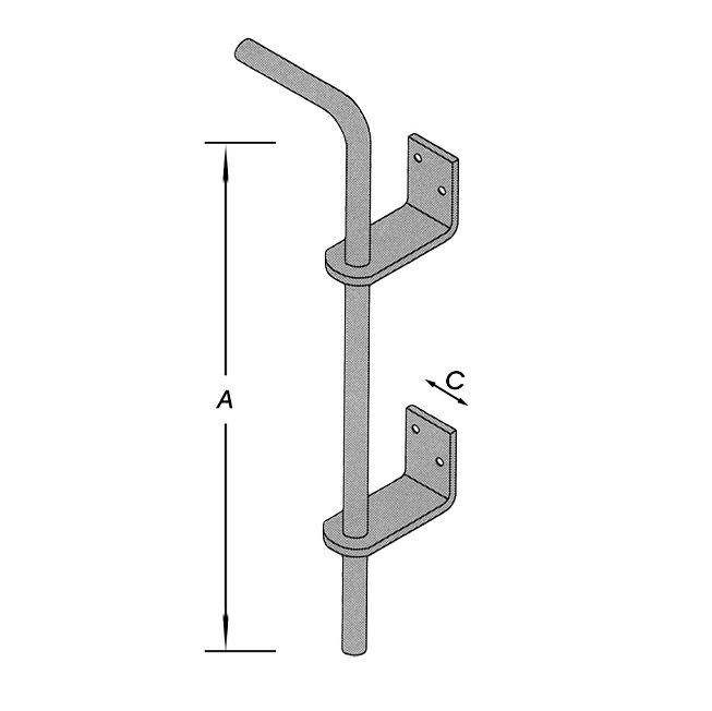 Zware grondgrendel voor hek met een ronde gebogen stift. Geelverzinkte uitvoering: A:400mm / B: 40mm