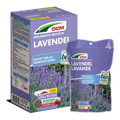 Meststof op basis van natuurlijke grondstoffen voor een maandenlange bloei en compacte groei van lavendel, aromatische planten en kruiden. Toepasbaar in de biotuin.