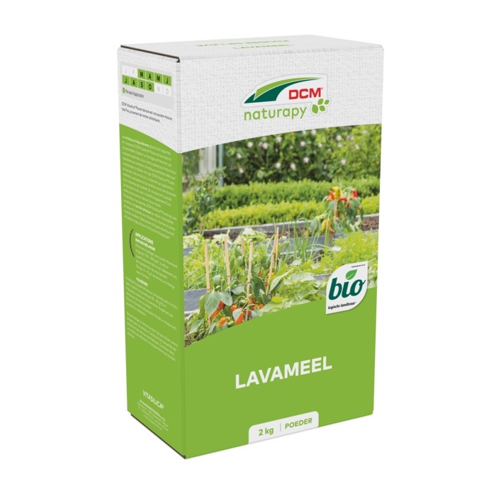 - Verstuif het lavameel met de hand of met een poederverstuiver over uw planten: 20 – 30 g/10 m2.