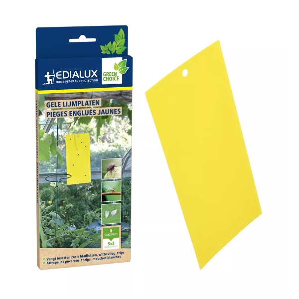Gele Lijmplaten worden gebruikt om vliegende insecten te vangen zoals bladluizen, bladmineerders, tripsen en witte vliegen in kassen, serres, veranda’s en wintertuinen. Zonder insecticiden. Werkingsduur 2 maanden.
